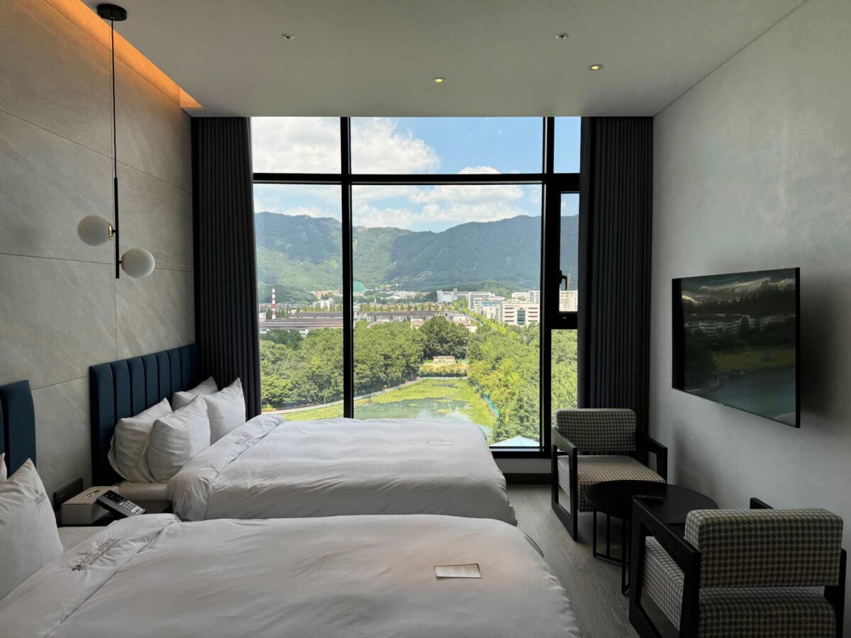 전 객실 33m² 이상의 넓고 쾌적한 객실 크기, 공기청정기, 300mbps 이상의 초고속 무료 와이 파이 환경, 피부 미용, 피부 질환 개선에 탁월한 효과가 있는 연수기로 연수된 물을 제공합니다.